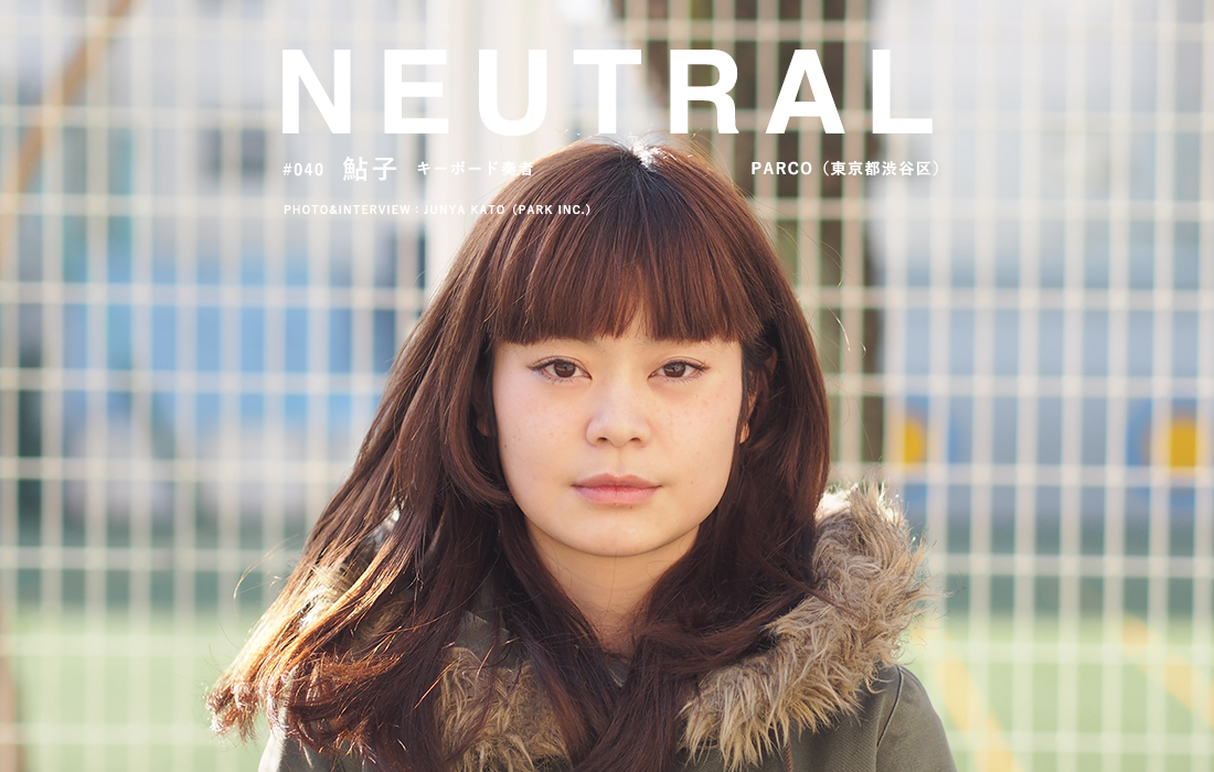 以前、バックナンバーをさかのぼってもらえれば、フジロッ久(仮)というなんとも麻酔的なバンドのフロントマンの藤原ってやつに、このNEUTRALでインタビューしている回があるんだけれども、今回の鮎子嬢は、久しぶりに会ったら、そのバンドのキーボードとして、化けてた。時にひとは、ある部分を麻痺させて、進まないといけない場合がある。そんな印象を得た。